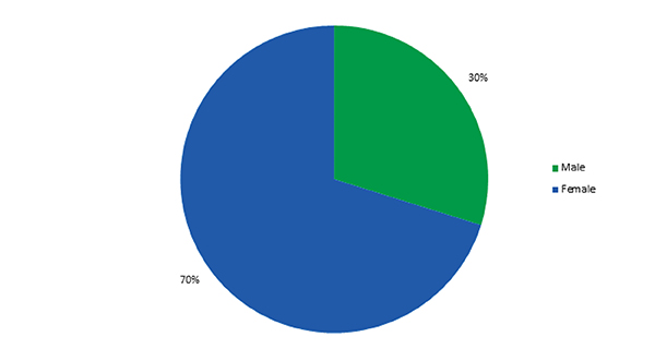 Bar Harbor Bank & Trust values gender representation in its leadership team. This pie chart shows that 70% of the leadership team is female, while 30% is male.